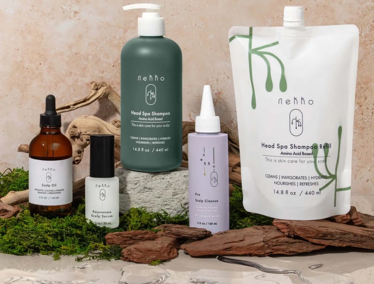 A 1.5-hour luxurious and meditative Scalp Ritual using Nekko Head Spa products. Includes scalp analysis, high-frequency treatment, oxygen-rich scalp oil treatment, aromatherapy, scalp massage, double shampoo, deep conditioning ozone micro-mist hair treatment with cold gemstone eye or face mask, scalp serum, and post-treatment scalp analysis